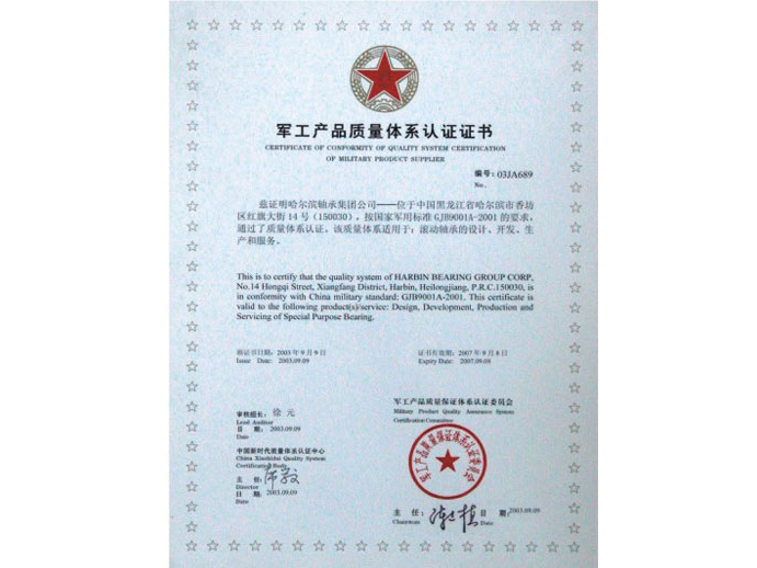 軍工產(chǎn)品質(zhì)量體系認(rèn)證證書